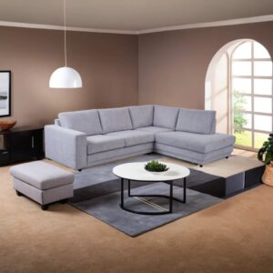 De hoekbank Girona combineert een strak, modern design met ultiem zitcomfort. Bekleed met een zachte ribstof in stijlvolle kleuren zoals grijs en lichtgrijs, voegt deze bank direct sfeer, textuur en karakter toe aan je interieur. Of je nu een moderne, industriële of klassieke woonstijl hebt – de Girona past er moeiteloos in.